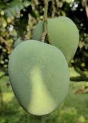 চ্যাপ্টা থাকে। এই আমের গায়ের রং সাধারণত গাঢ় সবুজ থাকে। পাকলে হালকা হলুদাভ