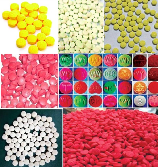 ইয়াবা। রঙ ও প্রতীকের বিচারে সব মিলিয়ে প্রায় ৩৫ ধরনের ইয়াবা বাংলাদেশে পাওয়া যায়।