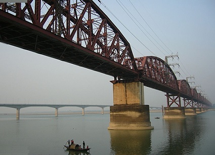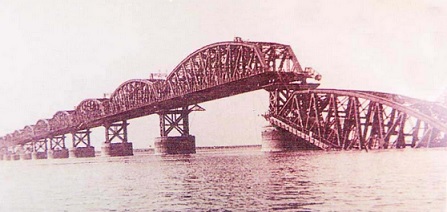১৯৭১ খ্রিষ্টাব্দের ১১ই ডিসেম্বরে পাক-বাহিনীর দ্বারা ক্ষতিগ্রস্থ হার্ডিঞ্জ সেতু |