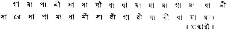 এই গ্রন্থে [পৃষ্ঠা: ২৩২] গান্ধারীর রাগ পরিচিতি হিসেবে উল্লেখ আছে- এটি সম্পূর্ণ
