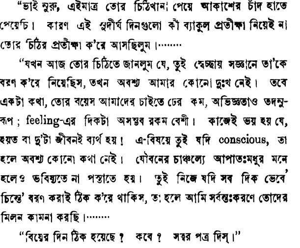 চিঠি জানা যায়, যে তিনি অগত্য নজরুলের এই বিবাহকে মেনে নিয়েছিলেন।