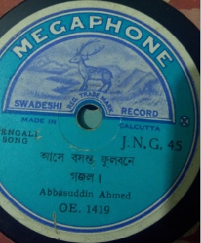 মেগাফোন। ফেব্রুয়ারি ১৯৩৩ (মাঘ-ফাল্গুন) জেএনজি ৪৫। শিল্পী: আব্বাস উদ্দিন