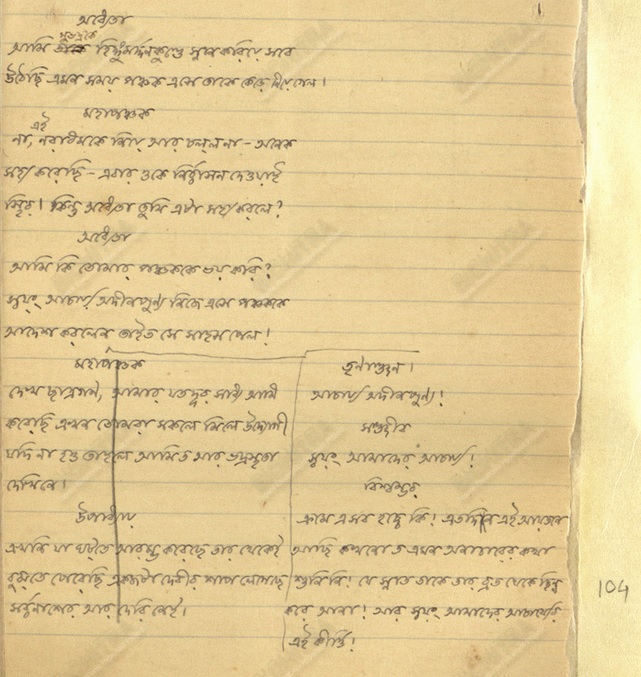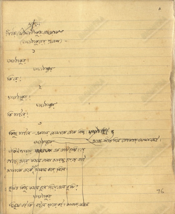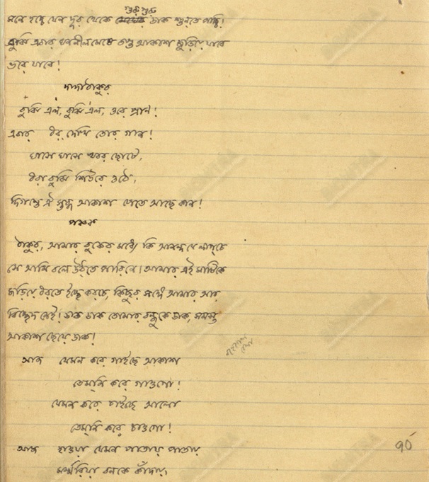 পাতার ভাঁজের বাম অংশে অংশে লেখা। (তুমি ডাক দিয়েছ কোন্ সকালে-এর সঞ্চারী থেকে আভোগ পর্যন্ত আছে)
