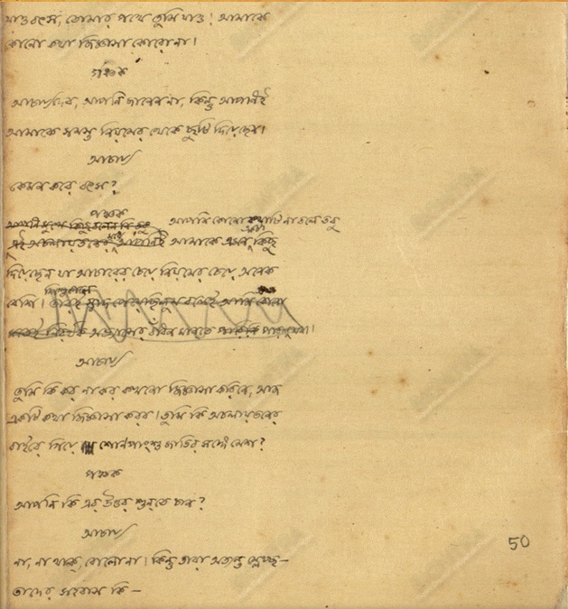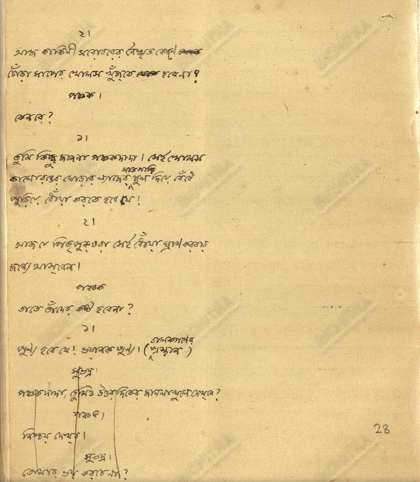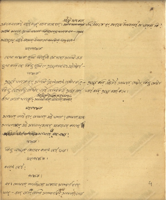 পাতার ভাঁজের উভয় অংশে লেখা। কিছুটা কাটাকুটি আছে।
