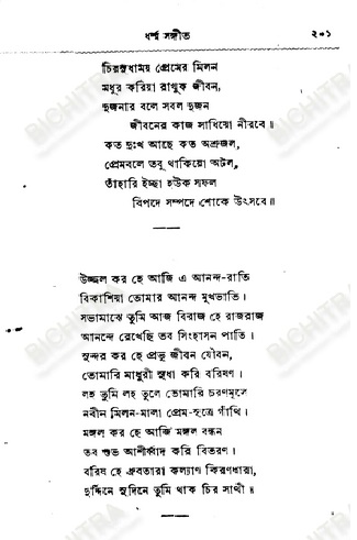 'ধর্ম্ম সঙ্গীত' হলো এই বিভাজিত গ্রন্থটির একটি। এ বিষয়ে প্রকাশকের বক্তব্য ছিল,
