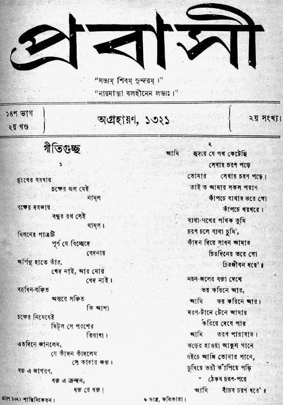 (১৩২৩ বঙ্গাব্দ) গীতালি অংশে অন্তর্ভুক্ত হয়ে প্রকাশিত হয়েছিল।