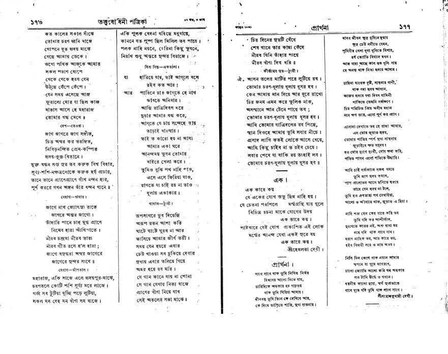 তত্ত্ববোধিনী [ফাল্গুন ১৮৩১ শকাব্দ, ১৩১৬ বঙ্গাব্দ]। মিশ্র সিন্ধু-একতালা। পৃষ্ঠা: ১৭৬। [নমুনা]