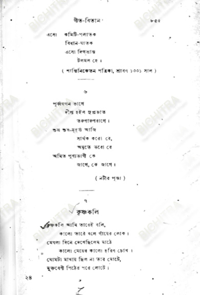 প্রথম খণ্ড, দ্বিতীয় সংস্করণ [বিশ্বভারতী, মাঘ ১৩৪৮, পর্যায়: পূজা, উপবিভাগ: জাগরণ ২, পৃষ্ঠা: ১১০-১১১] [নমুনা: প্রথমাংশ, শেষাংশ]