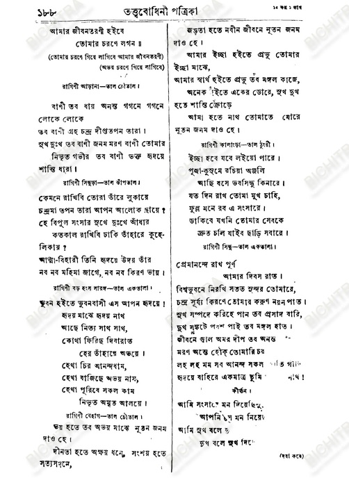 [আদি ব্রাহ্মসমাজ যন্ত্র, বৈশাখ ১৩০৭ বঙ্গাব্দ। শিরোনাম-পূর্ণকাম। কীর্তনের সুর। পৃষ্ঠা ১১৩]