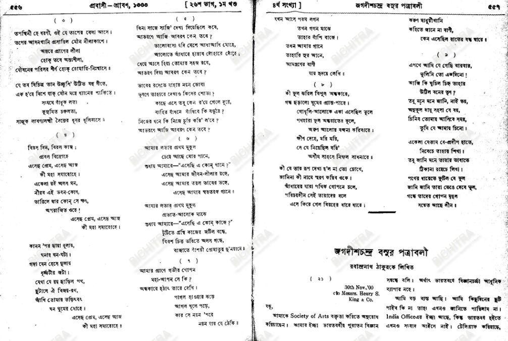 প্রবাসী [শ্রাবণ ১৩৩৩ বঙ্গাব্দ। গান সংখ্যা ৭। পূজা ৫৫৬-৫৫৭ [নমুনা]