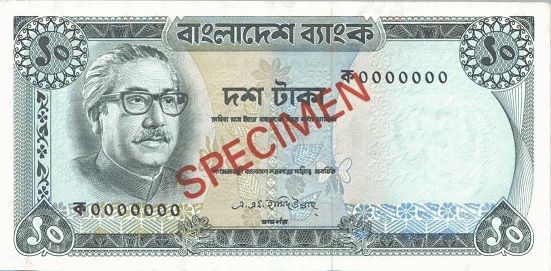 ১৯৭২ খ্রিষ্টাব্দের ২রা জুন ১০টাকা মুদ্রার প্রথম সংস্করণ অবমুক্ত হয়। এরপর ২০০৬ খ্রিষ্টাব্দের ২১ই সেপ্টেম্বর এর সর্বশেষ সংস্করণ প্রকাশিত হয়।