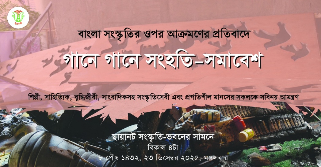 ২০২৫ খ্রিষ্টাব্দের ২৩ ডিসেম্বর (৮ পৌষ ১৪৩২, মঙ্গলবার) বিকাল ৪টায় ছায়ানট সংস্কৃতি-ভবনের সামনে
