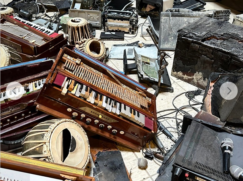 হামলাকারীরা ভবনের ভেতরে ঢুকে ব্যাপক ভাঙচুর, লুটপাট এবং অগ্নিসংযোগ করে। এতে ভবনের সিসি ক্যামেরা, কম্পিউটার, আসবাবপত্র এবং বহু মূল্যবান বাদ্যযন্ত্র,