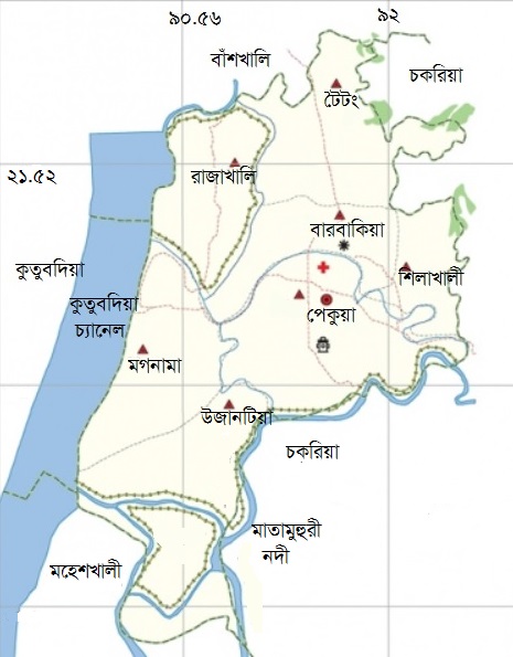 পশ্চিমে রয়েছে কুতুবদিয়া চ্যানেল এবং দক্ষিণে মহেশখালী উপজেলার সীমান্তবর্তী