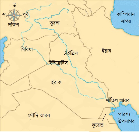 কয়েকটি শাখা নদীতে বিভক্ত হয়েছে। এই নদীর মূল শ্রোতধারা এবং শাখা নদীগুলো ইরাকের