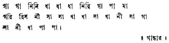 এই গ্রন্থে [পৃষ্ঠা: ২৩২] গান্ধারীর রাগ পরিচিতি হিসেবে উল্লেখ আছে- এটি সম্পূর্ণ