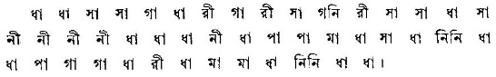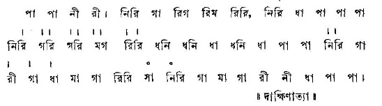 আরোহণ: র্সা, কাকলী নিষাদ, ধ, প, ম, অন্তর গান্ধার, র, স