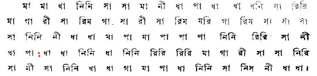 : স, র, গ, ম, ধ, কাকলী নিষাদ, র্সা